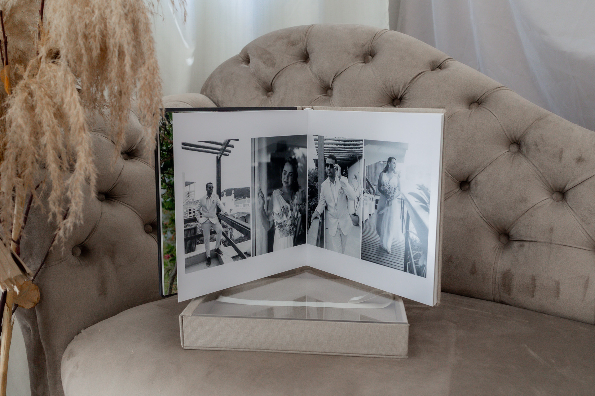Os nossos álbuns foram cuidadosamente elaborados com materiais de alta qualidade e design elegante, garantindo que as suas memórias sejam preservadas de forma duradoura e sofisticada.